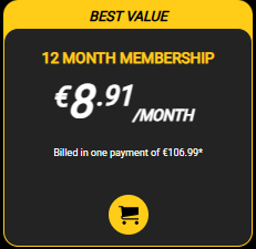 *12 Month Membership initial charge of €106.99 automatically rebilling at €106.99 every 365 days until cancelled.